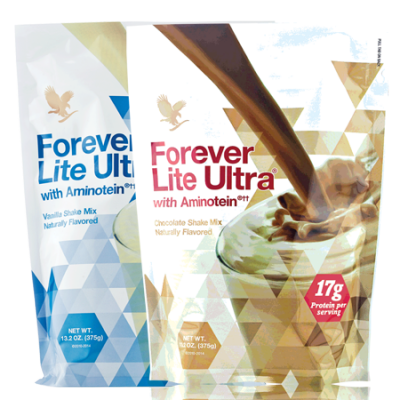 Forever Lite Ultra® with Aminotein® fehérje alapú, csokoládé vagy vanília ízű, vitaminokat és ásványi anyagokat tartalmazó termék.