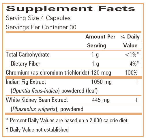 Nopál kaktuszt, bab kivonatot és krómot tartalmazó étrend-kiegészítő tabletta.